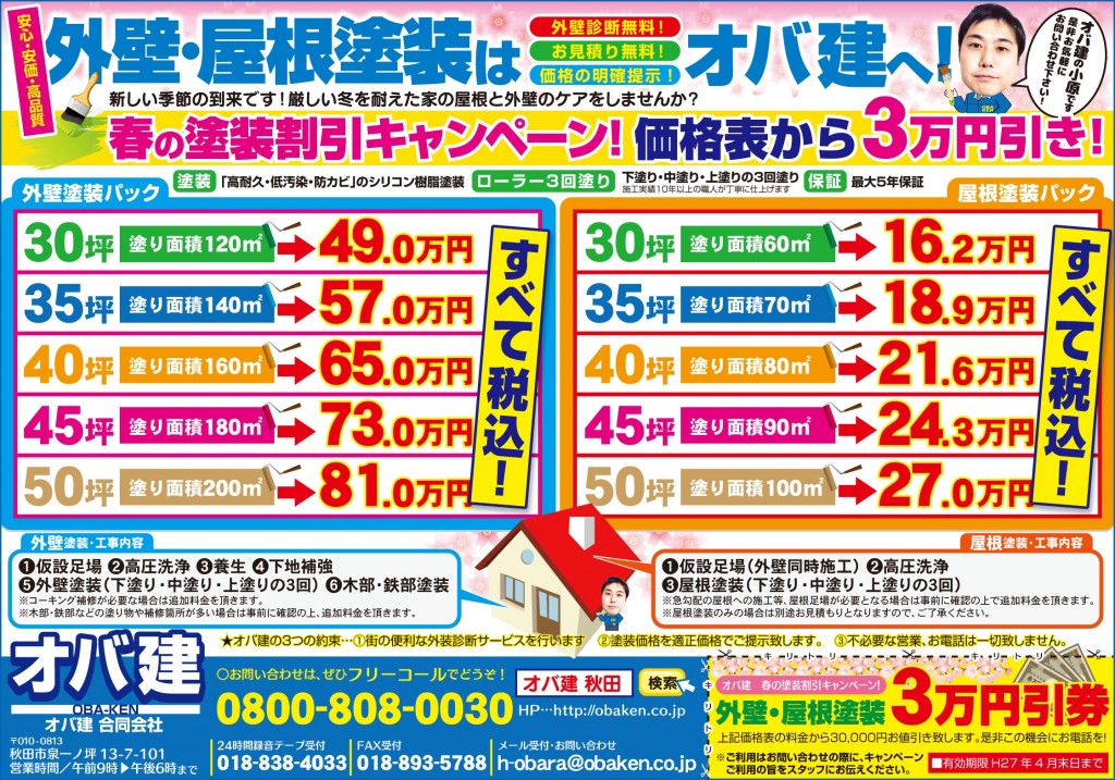 オバ建の小原です。 ここ最近、春めいた気候になってますね〜。先週半ばからお客様からのお問い合わせも多く、本当に感謝しております。 秋田市S様、M様、T様、当社の外...