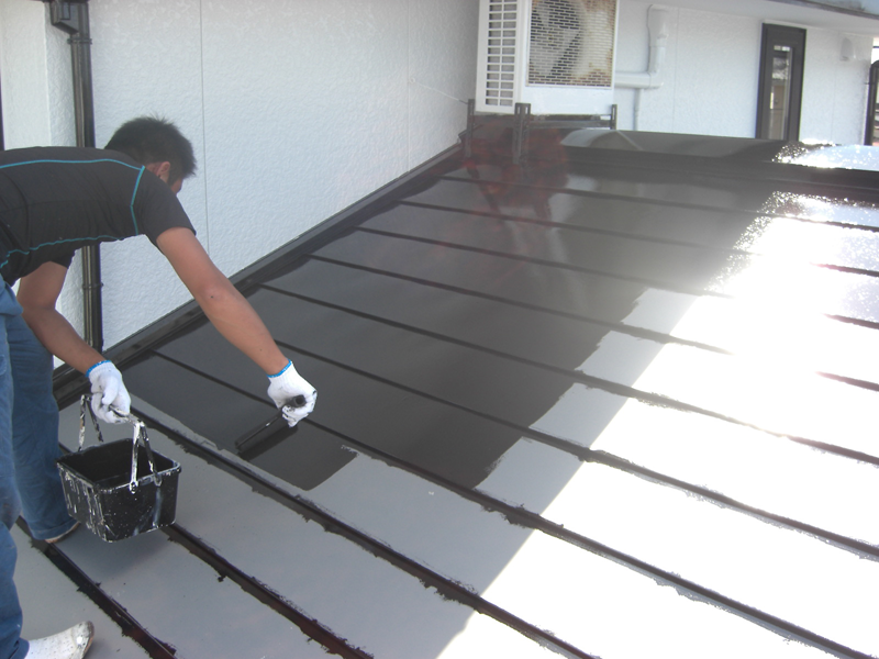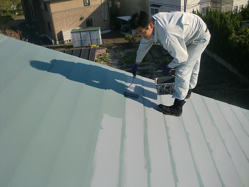【屋根】中塗り(シリコン樹脂塗料)